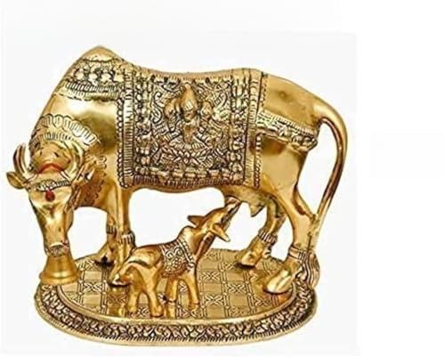Details: This holy cow will enhance the luck of your house. Suitable for home, office and also suitable for present purpose for your near and dear This statue of the endeared Hindu cow & its calf is an essential in any Hindu home. The epitome of motherly love, this Kamdhenu cow of the gow feeding its baby is the symbol of true motherly love and affection. Religious cow idol along with its calf is the symbol of prosperity, luck and vatsalya (love of mother for a child). Care Instruction: To maintain it in pristine condition, simply dust off. Clean With Soft & Dry Cloth