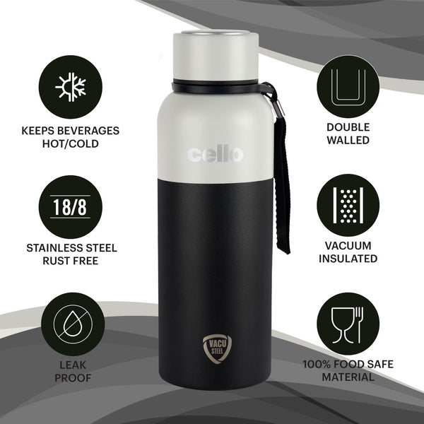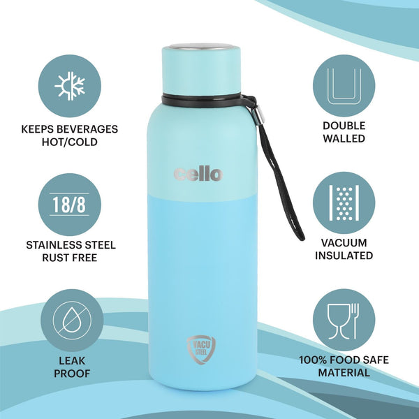 Neo Kent Flask, Vacusteel Water Bottle dual tones collection is the epitome of style and functionality. Stay hydrated in vibrant colors, from the soothing Blue to the nature-inspired Green and the elegant Peach. With a sleek Black option, timeless Grey, and a touch of royalty in Purple, there's a shade for every taste. Crafted with precision using Vacusteel technology, this water bottle ensures your beverages stay at the perfect temperature for longer. Elevate your hydration experience with Neo Kent, where design meets performance.