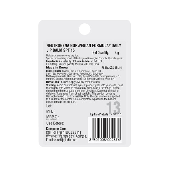 Neutrogena Norwegian Formula Lip Moisturizer For Dry Lip With SPF 15, White, 4 g, 0.15 Ounce (Neu-9578) (Pack of 1)
