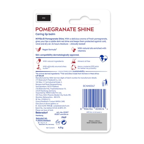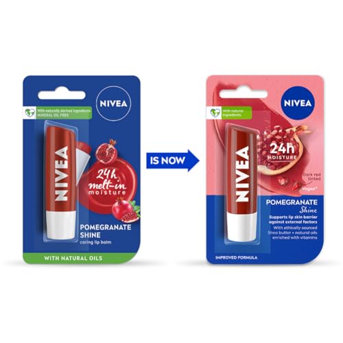 NIVEA Lip Balm, Pomegranate Shine, 24h Moisture with Natural Oils, Dark Red Shine & Pomegrenate Aroma, 4.8 g