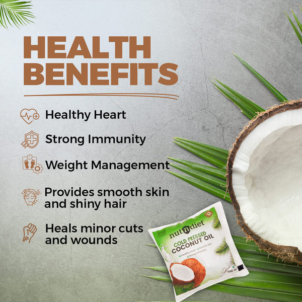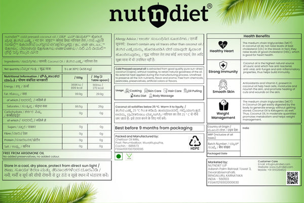 nutndiet Cold Pressed Coconut Oil 5 Litre Can | Pure, Natural & Chemical-Free | Multipurpose Oil for Cooking, Skin Care, Hair Care & Massage | Rich in Nutrients & Antioxidants