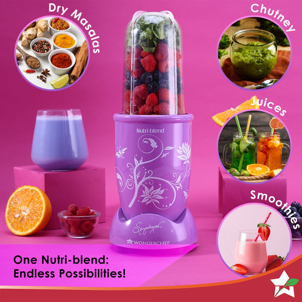 Nutri-blend is India’s best-selling mixer-grinder-blender thanks to its powerful motor, beautiful looks, unbreakable transparent jars and awesome performance. Nutri-blend is a complete system – you can begin with the 2 jars, and keep adding the large mixing jar, the chopper, juicer & food processor attachments separately as your needs evolve. Get ready to make luscious smoothies, finely ground masalas, tangy chutneys, chopped veggies and so much more in a jiffy.