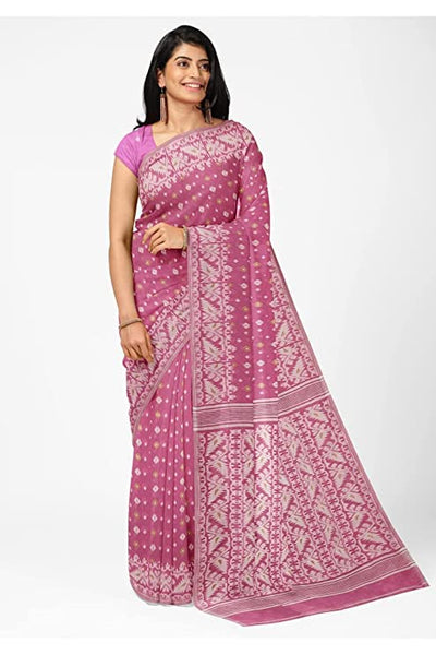 OISHANI SAREE GHOR Women's Traditional Bengal Cotton Silk Jamdani Saree (PINK)