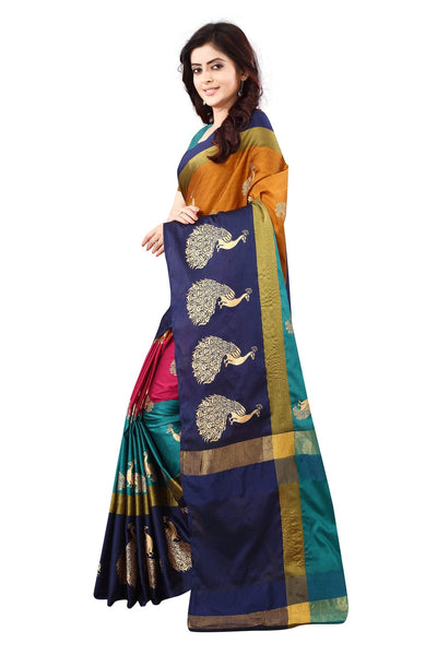 OM SAI LATEST CREATION Women's Z-card Cotton silk Foil Printing Lining Saree for Women Half Sarees Under 349 2020 Beautiful for Women Saree With Blouse Piece(Free Size) (Multi-Coloured)