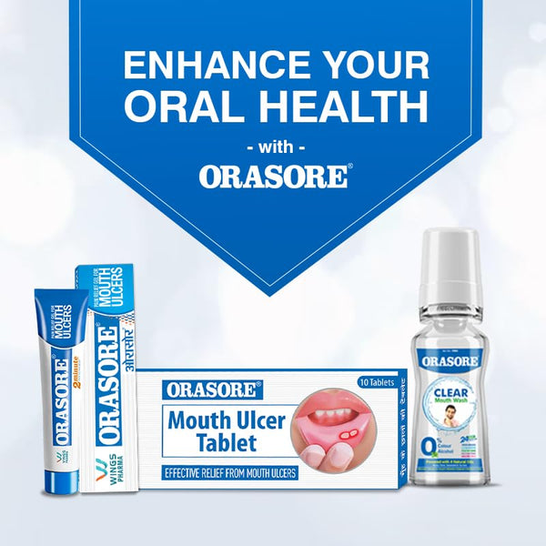 ORASORE Ultimate Oral Care Combo Pack With 1 Unit Each Of Mouth Ulcer Gel 12Gm, Mouth Ulcer Tablets (10) With Free Pen And Clear Mouth Wash (100Ml)