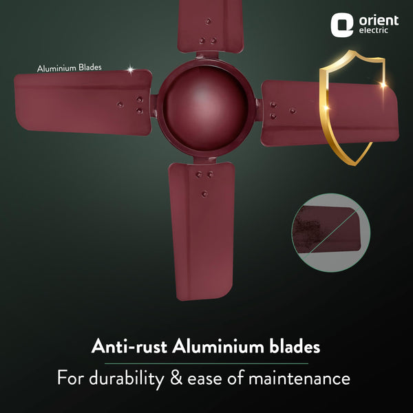 Orient Electric 600 MM New Air Plus | 4 Blade Small Ceiling Fan for Kitchen | 100% Copper Motor | Aluminium blades | 24 Inch Fan | 2 Years Warranty | Brown