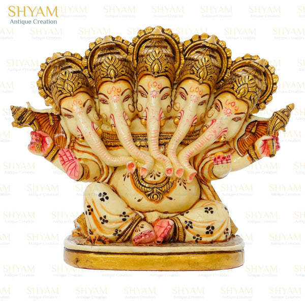 Panchmukhi Ganesha Idol Statue Energized 5 Faced/Mukhi Ganesha Figurine Ganpati Murti for Pooja, Antique Finish Figurine Marble Dust God Statue Ganpati Statue