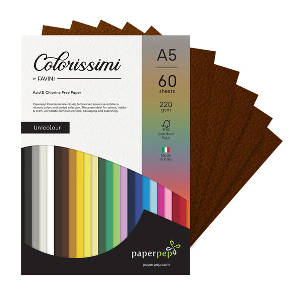 Paper Pep Colorissimi Card Stock 220Gsm A5 Cioccolato (Chocolate Brown) Unicolor Pack Of 60 Sheets