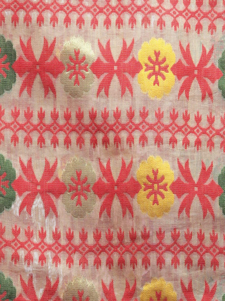 PinkLoom Women's Soft Cotton Jamdani Saree Without Blouse Piece, Beige, Gb156