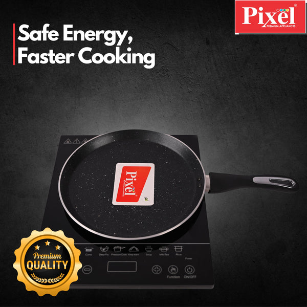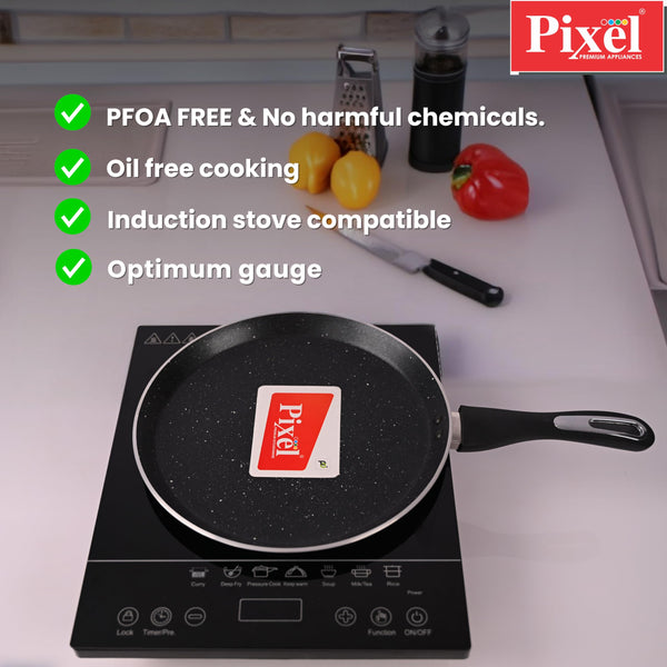 PIXEL Stellar Induction Base Nonstick Dosa Tawa, Granite Coating Crepe Pan Pancake Flat Skillet Tawa Griddle 11-Inch with Stay-Cool Bakelite Handle, Induction Compatible, PFOA Free