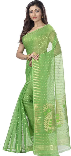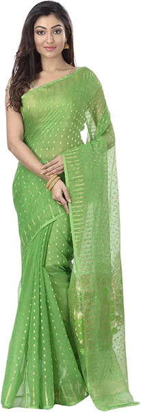 Piyari Fashion Womens Self Design Bollywood Cotton Silk Jamdani Saree Without Blouse Piece (Green)
