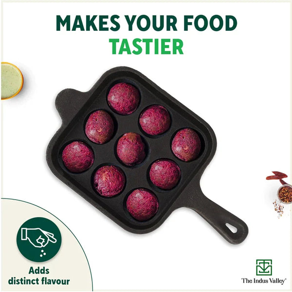 💪100% HEALTHY: The Indus Valley Pre-seasoned Square Cast Iron Paniyaram/Appe Pan (with long handle) is made from pure cast iron.