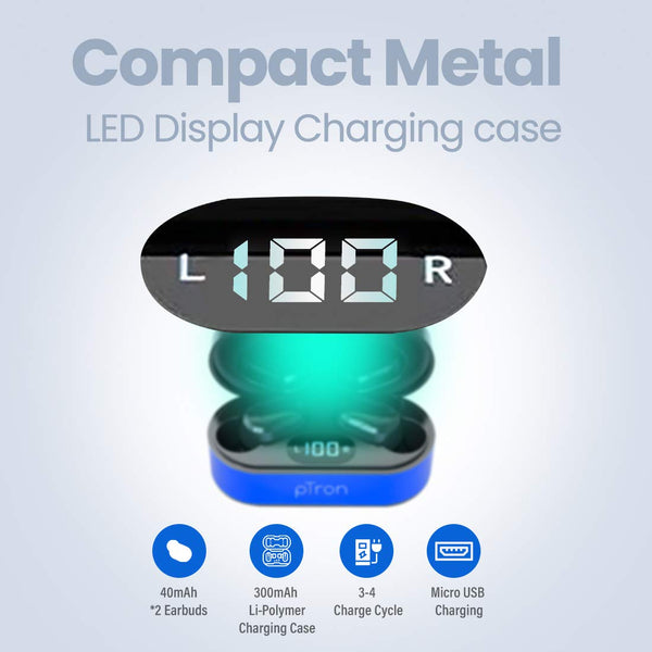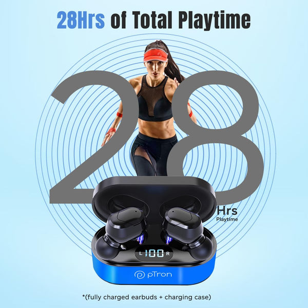 pTron Bassbuds Plus In-Ear TWS Earbuds with HD Mics, Bluetooth 5.0 Headphones with Immersive Sound, Stereo Calls, 28Hrs Playtime, Voice Assist Ready, IPX4 Water Resistant & Fast Charge (Electric Blue)