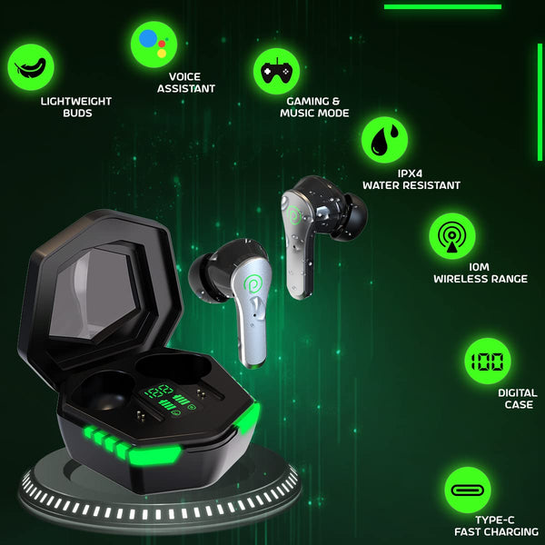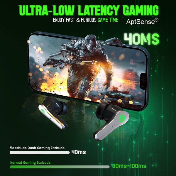 PTron Bassbuds Rush Bluetooth True Wireless in Ear Earbuds with Mic, Gaming 40ms Low Latency, 35Hrs Playtime, Deep Bass, ENC Stereo Call, BT5.3 Headphones, 1-Step Pairing, Voice Assist & IPX4 (Black)