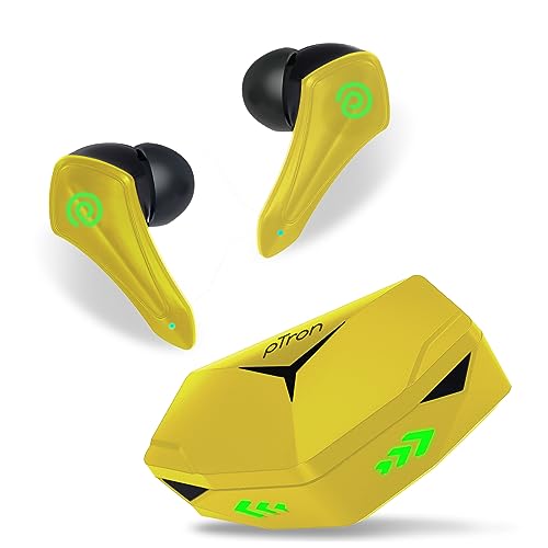 pTron Newly Launched Bassbuds B91 Plus TWS Earbuds with 38ms Gaming Low Latency, AI-ENC Stereo Calls, 45Hrs Playtime, Dual HD Mic, In-Ear Bluetooth 5.3 Headphones, Fast Type-C Charging & IPX5 (Yellow)