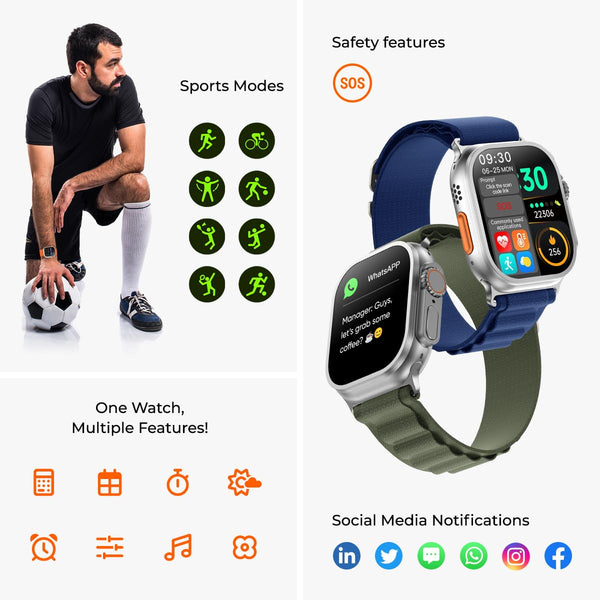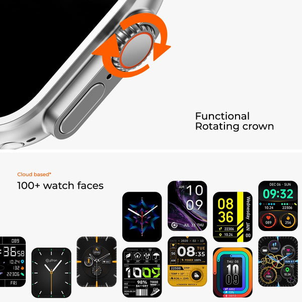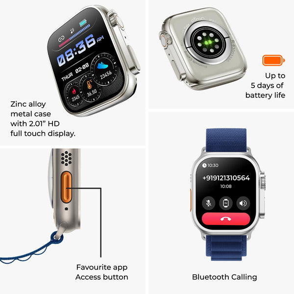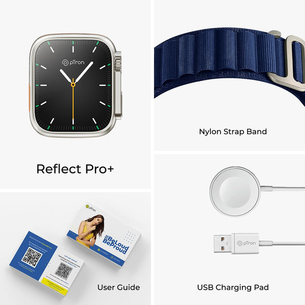 pTron Newly Launched Reflect Pro Plus Smartwatch, Bluetooth Calling, 2.01" Full Touch Display, 650 NITS, Digital Crown,Metal Frame,100+ Watch Faces, HR, SpO2, Voice Assist, 5 Days Battery Life (Blue)