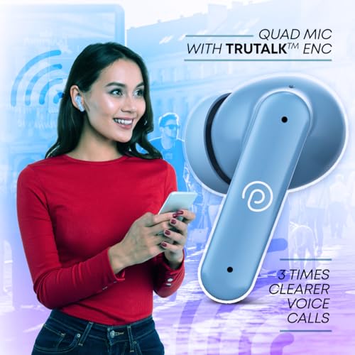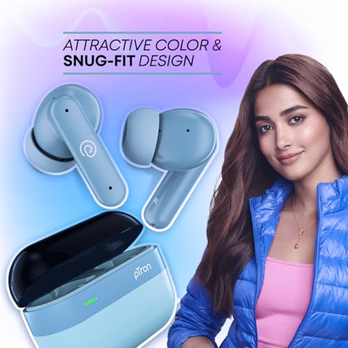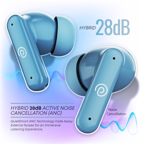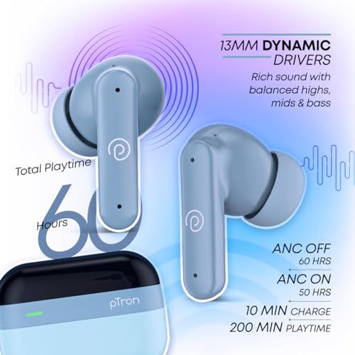 pTron Newly Launched Zenbuds 1 ANC Earbuds, 28dB Active Noise Cancellation TWS, Quad Mic TruTalk ENC Calls, 60Hrs Playtime, 45ms Game/Movie Mode & in-Ear Bluetooth 5.3 Wireless Headphones (Blue)