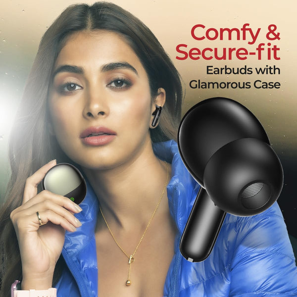 pTron Newly Launched Zenbuds Evo TWS Earbuds,Ai-Trutalk Enc Calls,45Ms Movie/Music Modes,Deep Bass,32Hrs Playtime,Bluetooth 5.3 Headphones,Ipx5 Water Resistant&Type-C Fast Charging (Black),in-Ear
