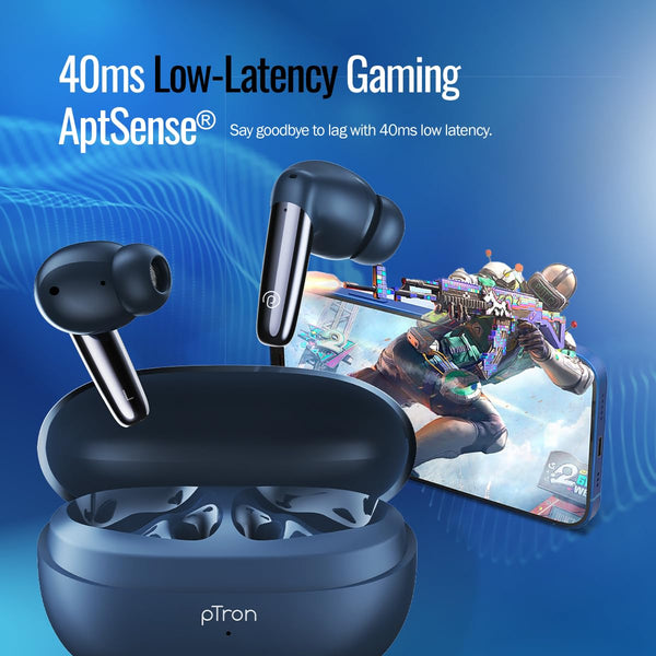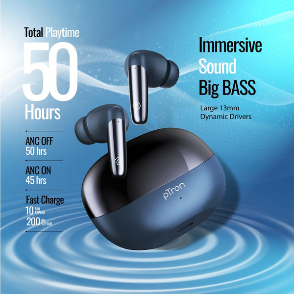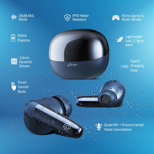 pTron Newly Launched Zenbuds Ultima ANC Earbuds, 35dB Active Noise Cancellation TWS, Transparency Mode, Quad Mic TruTalk ENC Calls, 50Hrs Playtime & in-Ear Bluetooth 5.3 Wireless Headphones (Blue)
