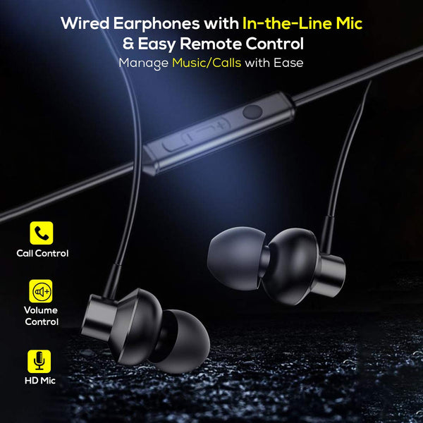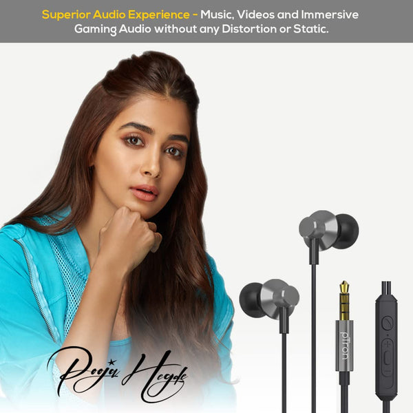 pTron Pride Lite HBE (High Bass Earphones) in Ear Wired Earphones with Mic, 10mm Powerful Driver for Stereo Audio, Noise Cancelling Headset with 1.2m Tangle-Free Cable & 3.5mm Aux (Grey)