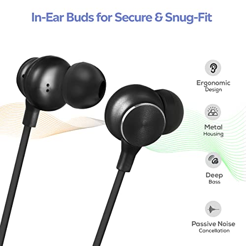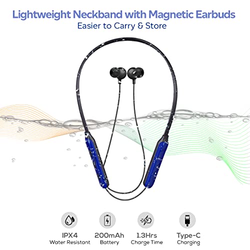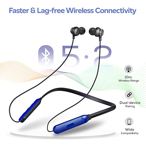 pTron Tangent Duo Made in India Bluetooth 5.2 Wireless in-Ear Headphones with Mic, 24Hrs Playback, 13mm Drivers, Punchy Bass, Fast Charging Neckband, Voice Assist, IPX4 & in-line Controls (Black/Blue)