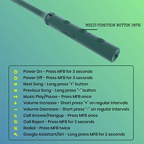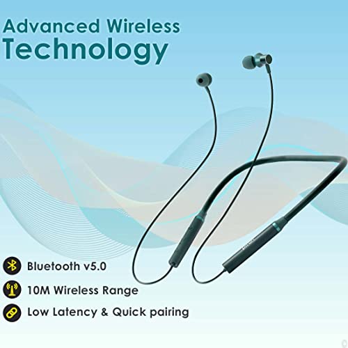 pTron Tangentbeat in-Ear Bluetooth Wireless Headphones with Mic, Punchy Bass, 10mm Drivers, Clear Calls, Dual Pairing, Fast Charging, Magnetic Buds, Voice Assist. & IPX4 Wireless Neckband (Dark Green)