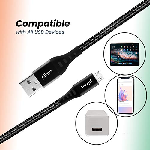 pTron USB-A to Micro USB 3A Fast Charging Cable compatible with Android Phones/Tablets, 480mbps Data Transfer Speed, Made in India, Solero MB301 Tangle-free USB Cable (Nylon Braided, 1.5M, Black)