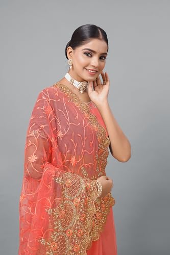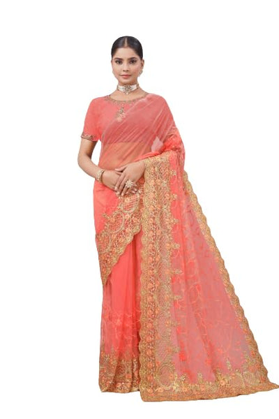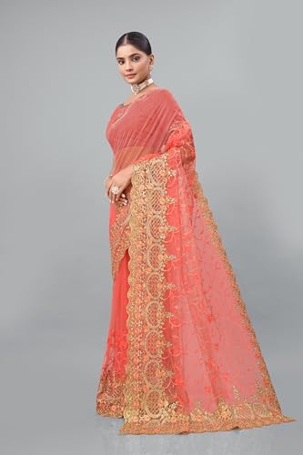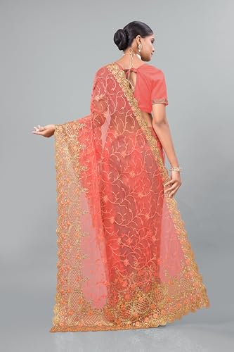 Radhe Radhey Women's New Georgette Embridered Sari With Unstitched Blouse Piece(Free Size) (peach)