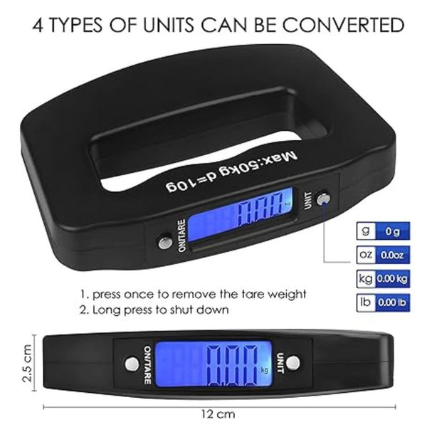 Raptas Electronics Travel Luggage Scale - Digital Suitcase Weighing Scales with Temperature Reading | 50 Kg Capacity in Sleek Silver