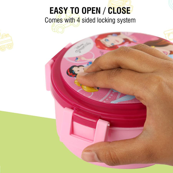 Spacious round shape lunch box with generous capacity and lightweight design.