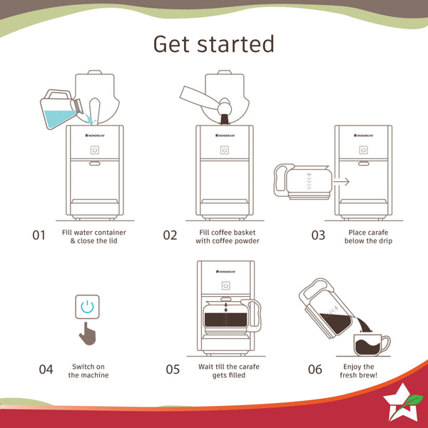 Kick-start your mornings with freshly brewed coffee. Get ground coffee that suits your taste and start brewing! Regalia Pronto Coffee Maker delivers superior taste, as it maintains the essential oils and flavour of the coffee grounds while eliminating agents that cause bitter taste. The machine is sized to brew up to 5 cups of coffee (700ml) at a time.