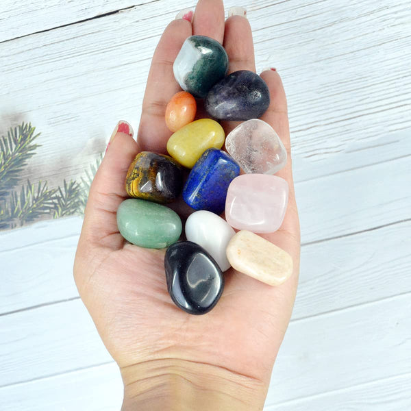 Reiki Crystal Products 12 Chakra Tumble Kit Certified Natural Crystal Tumble Stone Sets Energized by Experienced Reiki Healing Grandmaster