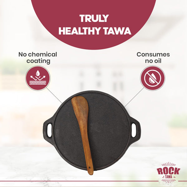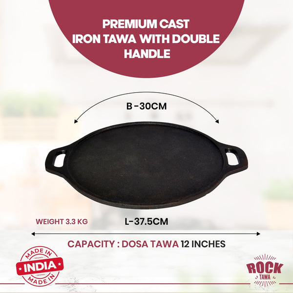 Details: 12 In Pre-Seasoned Cast Iron Dosa Tawa For the crispy round buttery dosa and the ever tempting egg omelette, get it done with the ultimate perfection on this flat beauty! Being gas, electric and induction friendly, this dosa tawa is 12 inch in diameter and 4.2 mm in thickness. As a pre seasoned cast iron skillet product, get these pans to prepare delectable dishes and varieties of dosa to surprise everyone and gift them a healthy life. Pre seasoned with sunflower oil, 4.2 mm thick body and one year warranty this tawa is one of the most sought after products by our customers.
