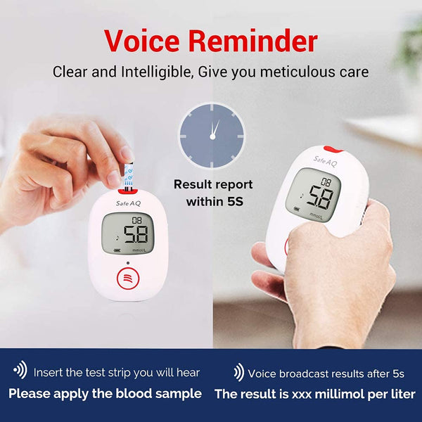 Sinocare PTS(USA) Diabetes Testing Kit/Blood Glucose Monitor Safe AQ Voice/Glucometer with Voice Reminder and Light Warning/Blood Sugar Test with 50Strips & 50Lancets & Case Pack
