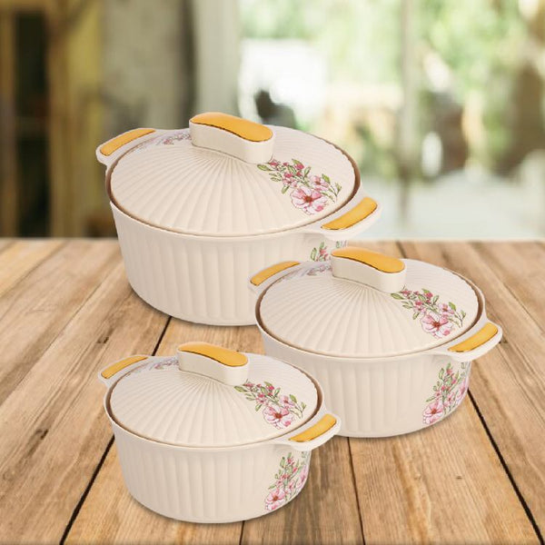 The Sonet Insulated Casserole Set of 3 introduces a blend of functionality and elegance to your kitchen. Available in classic colors like Black, Beige, and White, this set includes three insulated casseroles with capacities ranging from 500ml, 1000ml, to 1500ml, making them suitable for various culinary needs. Crafted with a durable outer layer made of virgin plastic and an inner layer constructed from stainless steel, these casseroles excel in temperature retention and robustness. Whether you're keeping dishes warm or cold, the Sonet Insulated Casserole Set ensures that your meals are served at their desired temperature, making it an indispensable addition to your kitchen arsenal.