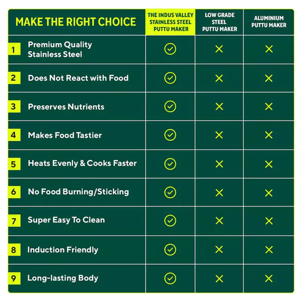 👌100% TOXIN-FREE: The Indus Valley Stainless Steel Puttu Maker is 100% toxin-free and food-safe. Made from premium food-grade quality stainless steel, this puttu maker is a healthier alternative to ordinary steel or aluminium ones.
