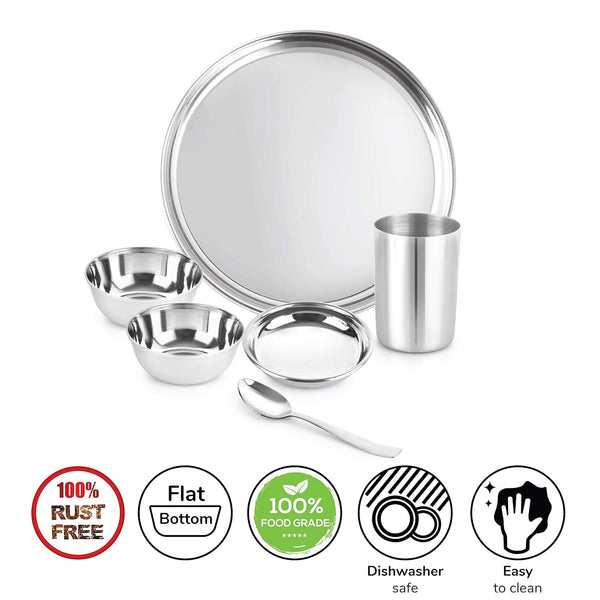 Ideal for daily use or serving guests, the steelox dinner sets are made from high-quality stainless steel making it resistant to corrosion. This multipurpose dinner set can be used at home, in offices and in restaurants. It is non-breakable, durable, sturdy, rust free and long lasting. Dishwasher Safe