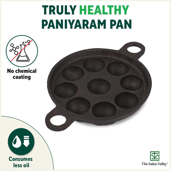 💪100% HEALTHY: The Indus Valley Premium Cast Iron Paniyaram/Appe Pan 9 PIT is 100% food-safe and toxin-free.