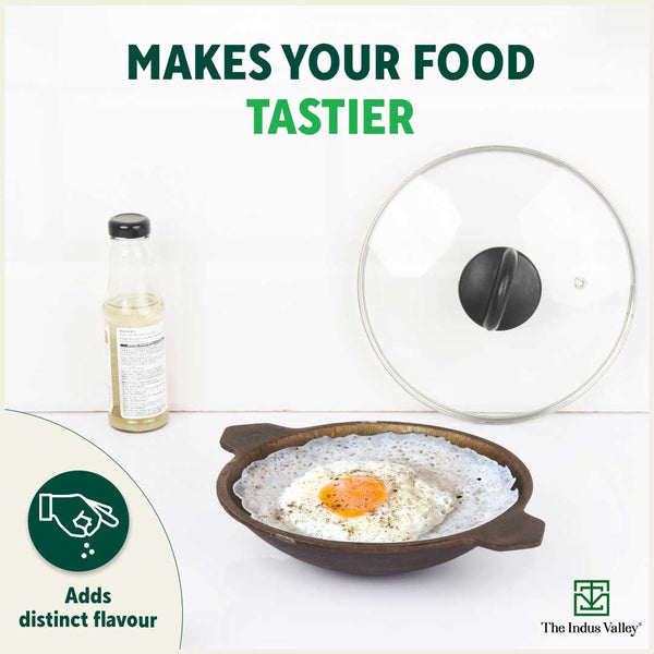 😍EASY TO USE: Also called appam chatti, the appam maker has a sturdy twin handle and comes with a food-grade tempered glass lid. Its wide concave surface enables you to swirl appam batter easily. (You can also order silicone handle covers from The Indus Valley for safe cooking).