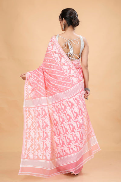 Tant Vastra Women’s Soft Resham Dhakai Karat Jamdani Saree without Starch And Without Blouse Piece (Peach)