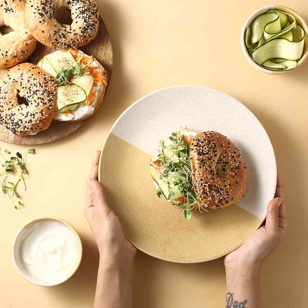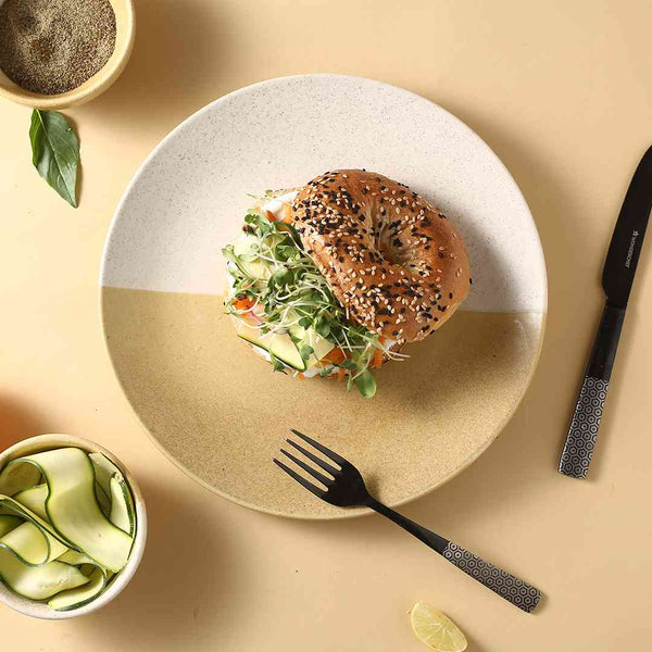 The Teramo collection of premium stoneware is inspired by earthy tones and is a true blend of traditional craft with contemporary forms. These dinner plates in half-n-half tones of yellow and beige is fashionable yet rustic for your dinner table.