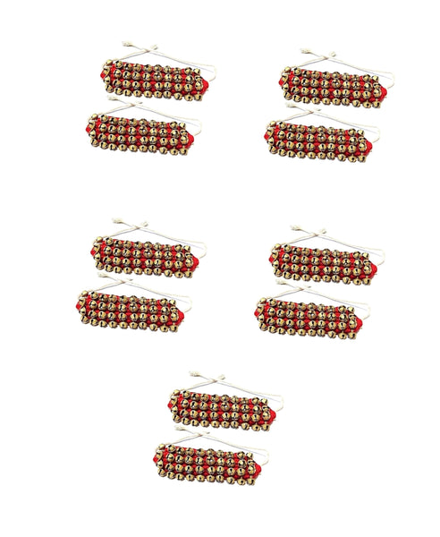 UAPAN Brass Ghungroo Anklets Bells (4 Line Pad, Red, 5 Pair)