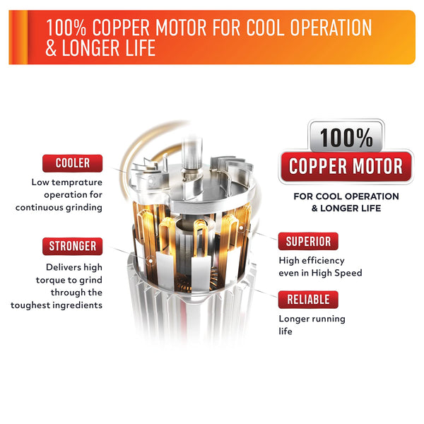 Details: Presenting Usha Wet Grinder with 100% copper motor for cool operation and longer life. It is designed to give you the best batter you can have. While its Dual Flow Breakers create a cooler & smoother batter, its secure arm lock ensure safety and enhanced grinding. Go ahead, experience intelligent grinding with Usha Wet Grinder