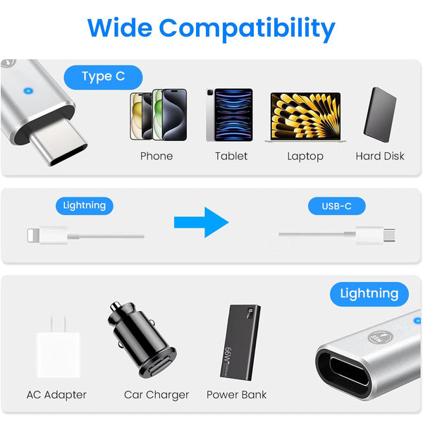 Verilux® USB C Adapter for iPhone, Lightn-ing to USB C Portable 35W Fast Charging USB C Adapter Support Data Sync USB C Adapter for iPhone15/1413/12/11, iPad Air