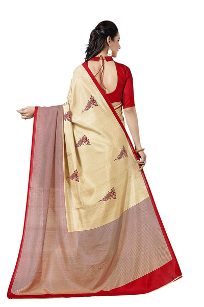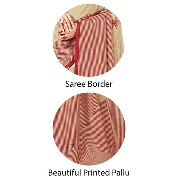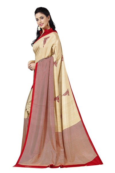 Vimla Women's Beige Malgudi Art Silk Uniform Printed Saree with Blouse (5899_Free Size, Beige)