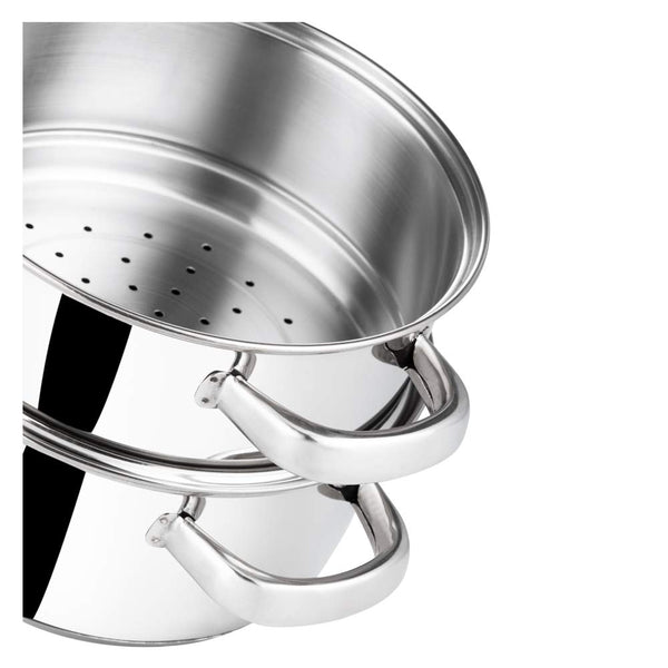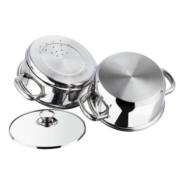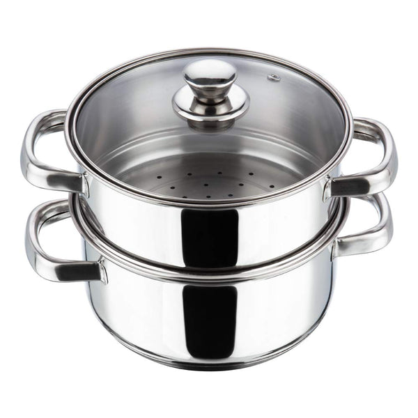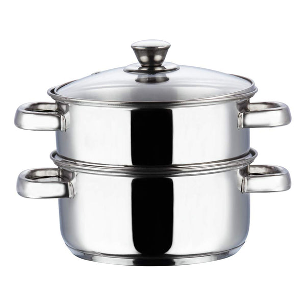 The two tier stainless steel steamer is a nice addition to your kitchen appliance set as it not only presents a healthy cooking option but also offers unmatched quality. This steamer pot with glass lid has a large storage space that makes it easier to cook large quantities of foods such as rice, veggies, noodles, pasta or soups without the aid of any oil. The steamer has a lid made from tempered glass with a outlet for steam release. Its two hollow stainless steel handles stay cool while cooking and enables easy lifting and handling of this appliance.