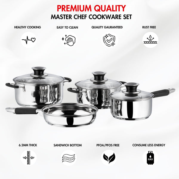 Details: Special encapsulated base. Sandwhich bottom which ensures even cooking. Thus prevents food from getting burnt.