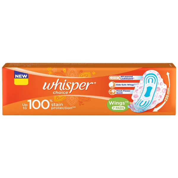 Whisper Choice Sanitary Pads - With Fresh Flower Scent, Protects From Stains, 7 Pcs
