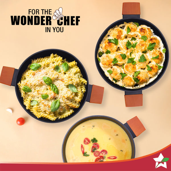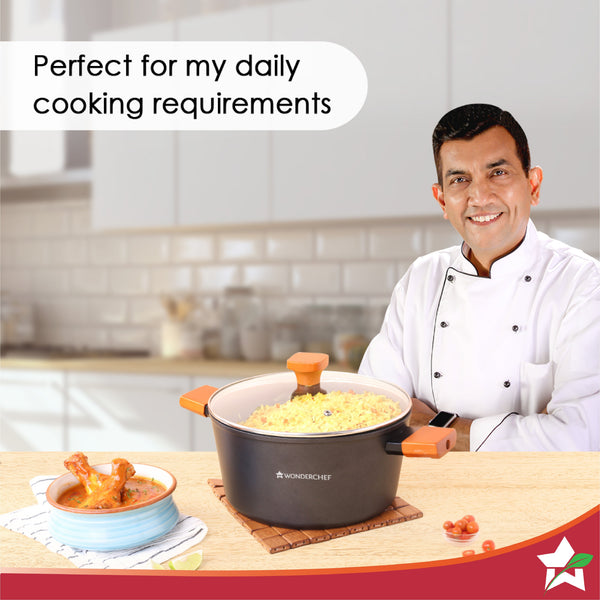 Caesar Non-Stick Casserole with Lid, German Beechwood Handle, Pure Grade Aluminium, Induction Bottom, 5 mm, Black, 5 Years Warranty