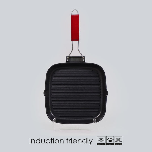 Caesar Nonstick Folding Grill Pan | Ideal for Barbeque, Tandoori & Sandwiches | Smart Folding Handle | Space Saver | Gas & Induction Friendly | PFOA Free | 2.3L | 5 Year Warranty | Black